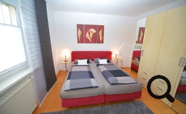 Zwei-Zimmer-Apartment, 30 qm Schlafzimmer und komfortabler Wohnraum, Dusche/WC/Föhn, Radio/TV kostenloser Internetanschluss/WLAN, Safe, Balkon