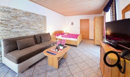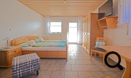 Wir bieten Ihnen großzügige, helle Doppelzimmer mit komfortabler moderner Ausstattung. Sie verfügen über eine kleine Wohnecke, Dusche/WC/Föhn, Radio/TV, kostenlosen Internetanschluss/WLAN, Safe sowie Balkon südseitig.